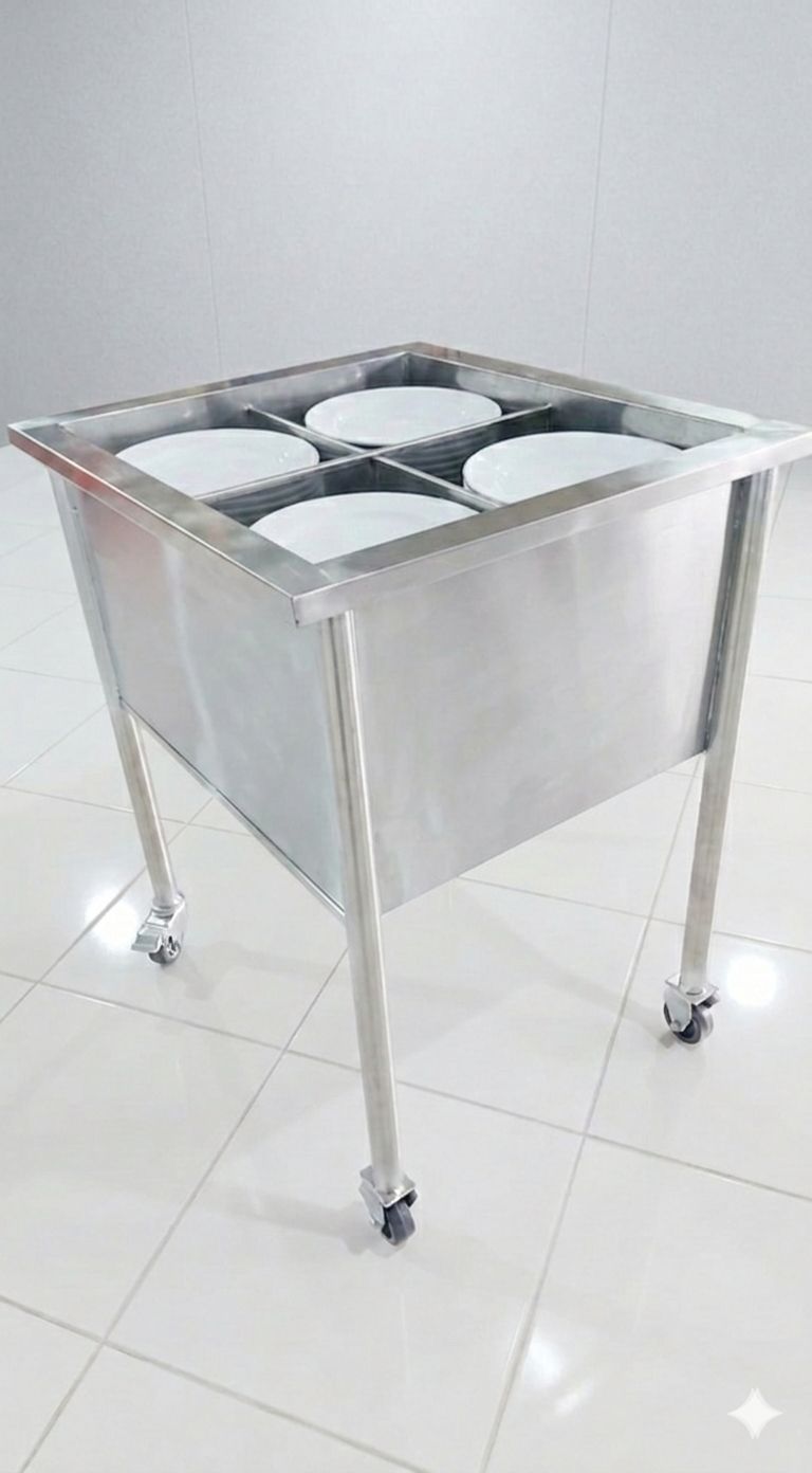 O carrinho conta com uma estrutura robusta em aço inox, que oferece alta resistência e fácil higienização. São quatro rodízios para facilitar o deslocamento, sendo dois deles com trava para maior segurança. As divisórias internas evitam o contato direto entre os pratos, prevenindo danos ao transportá-los.